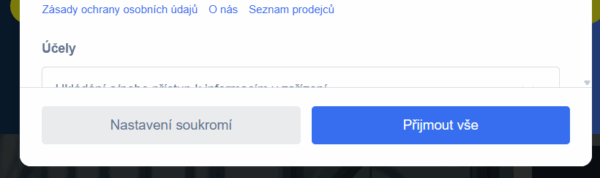 Druhá velmi častá chyba: tlačítko pro odmítnutí souhlasu je schované hluboko v nastavení. V první vrstvě je tlačítko pro souhlas se všemi soubory cookie, zatímco odmítnutí vyžaduje několik kliků přes nastavení. Nebo dokonce tlačítko pro odmítnutí chybí úplně a návštěvník musí ručně odškrtávat jednotlivé kategorie souborů cookie.