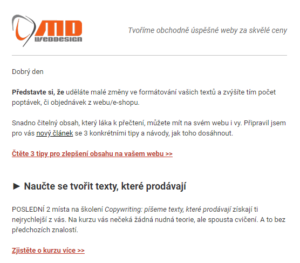 V rámci MD webdesign spravujeme e-mail marketingovou komunikaci našim VIP klientům. A máme to nastavené následovně: