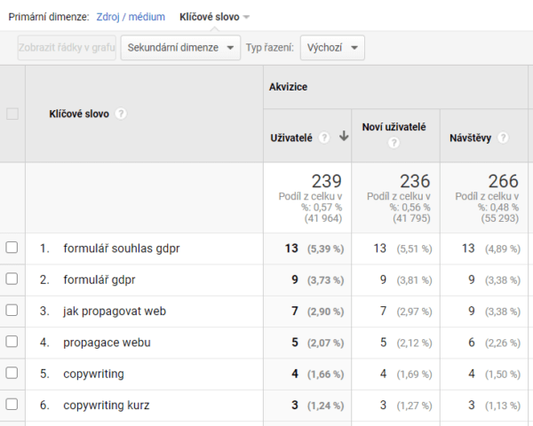 Potřebovat budete aktivní měření Google Analytics na vašem webu. Do něj totiž hledací fráze předává vyhledávač Seznam. Google bohužel už řadu let nikoliv.