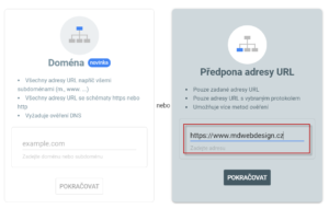 Jinou vhodnou alternativou je volba Poskytovatel názvu domény. Tento postup ale vyžaduje úpravu DNS záznamů na vaší doméně. A to přenechte svému správci webu.