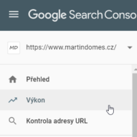V levé navigační nabídce klikněte na Výkon. Pokud levou navigaci nevidíte, rozbalte ji kliknutím na ikonu tří čárek vedle textu Google Search Console.