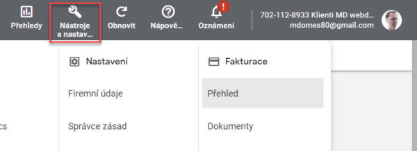 V Googlu to je už dnes jednodušší. Fakturu v Google Ads najdete vždy jednu, a to za uplynulý měsíc. Obvykle do prvních 3. dnů v měsíci. Hledejte ji zde: Nástroje a nastavení → Fakturace → Přehled.