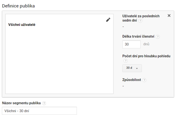 V pravém sloupci můžete upravit Délku trvání členství = po jakou dobu se budou reklamy lidem z tohoto segmentu zobrazovat.